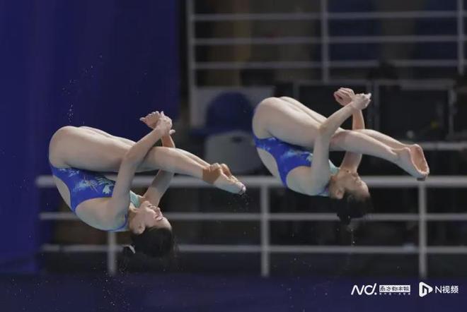全红婵/王伟莹在比赛中。南都N视频记者 黎湛均 摄 在此前举行的 女团双人3米板 广东队 陈艺文/林珊 拿下第一 梅颖芯/欧阳钰 拿下第三