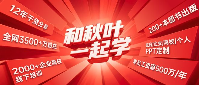 如果你也想成为其中一员,赶紧加入我们吧~ 现在扫码 免费学习 学习打卡还能领取: 秋叶 100 套原创精美 PPT 模板 秋叶 100 页PPT 版式手册 10 万字秋叶PPT 真实学员接单经验 《秋叶PPTAI 字效设计手册》 《秋叶PPT AI高质量背景图提示词手册》 点击下方卡片关注【秋叶AIPPT】 发送关键词【1】 免费领取秋叶独家精美 PPT 模板