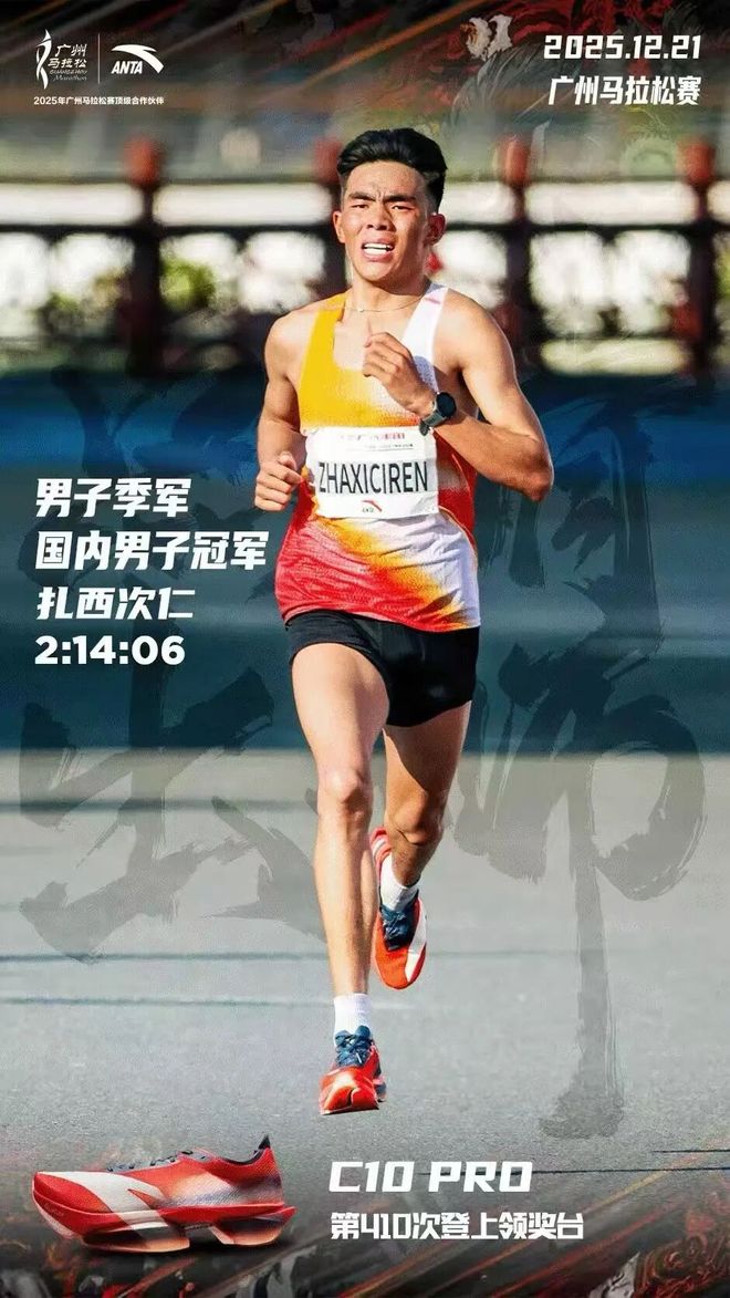 本届广马赛场,竞争激烈程度「拉满」。 男子选手这边,来自埃塞俄比亚、肯尼亚的Afewerk Mesfin和Felix KIRWA分获男子冠亚军,季军与国内冠军则由扎西次仁以2小时14分06秒摘得;女子方面,来自埃塞俄比亚的Joyce Chepkemoi Tele以2小时22分40秒夺冠并打破赛会纪录,表现同样亮眼。 值得一提的是,他们的跑服以及脚上的C10 Pro跑鞋都印有同一个品牌logo——安踏。这意味着,在这些顶级跑者的背书下,安踏以近乎「包圆领奖台」的存在感,为这场年度收官战增添了浓墨重彩的一笔。