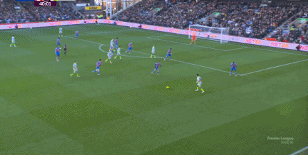 这一丢球,让主场作战的水晶宫难以接受,所以在这之后,他们试图打出反制,但成型的两次不同的进攻,还是迎来了相同的结果: